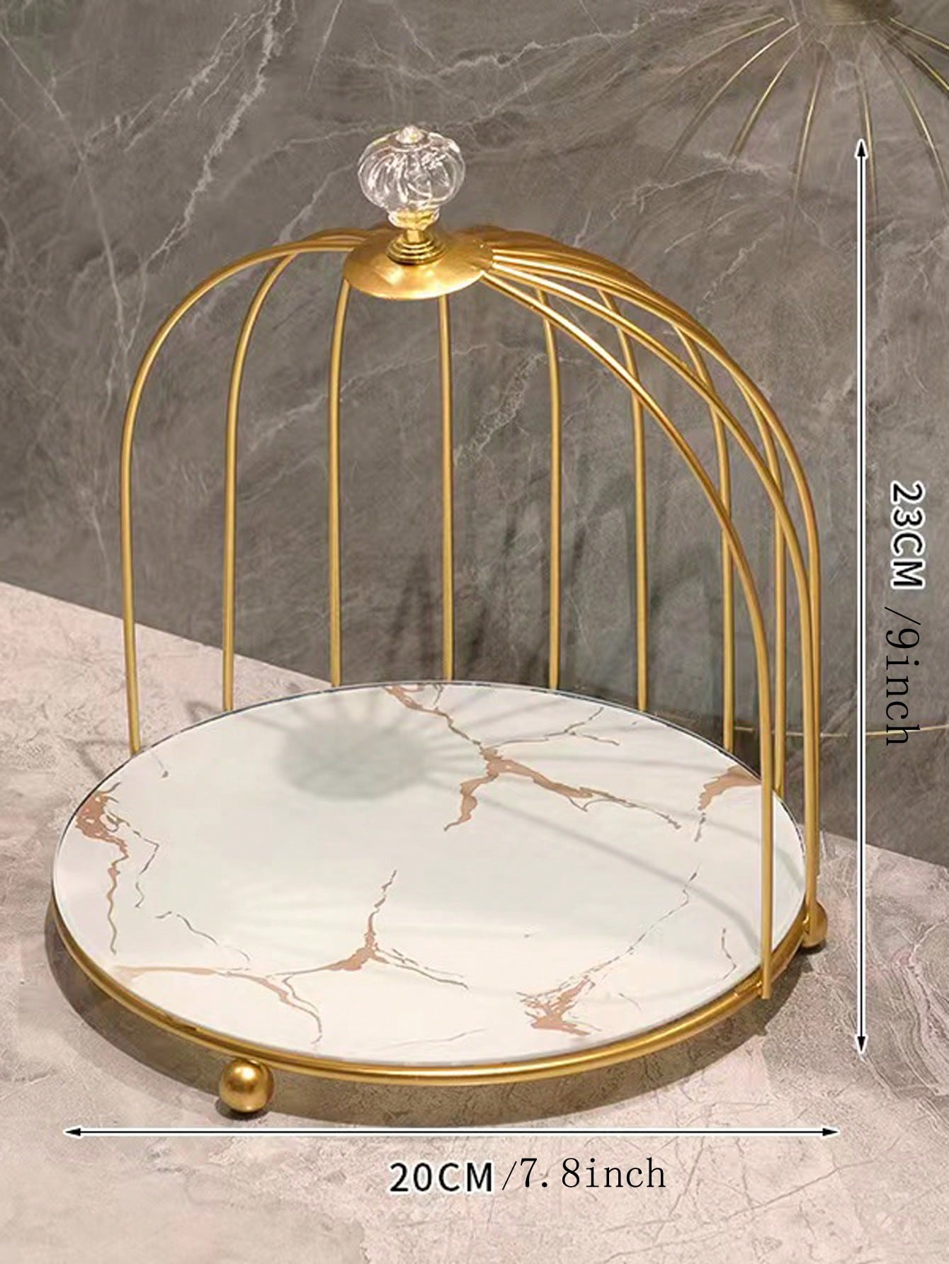يُعد القفص المعدني الذهبي لتخزين مستحضرات التجميل والعطور حلًا عمليًا وأنيقًا لتنظيم أغراضك اليومية مع الحفاظ على جمال وأناقة المكان.